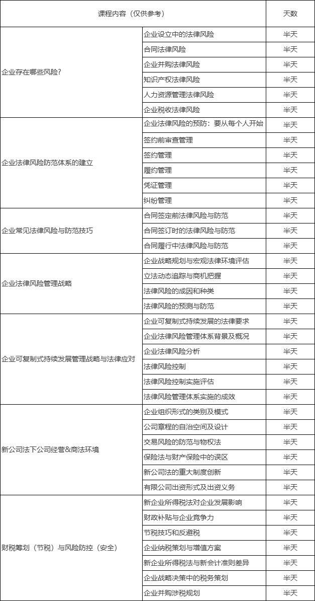 企业法律风险防范专题高级研修班