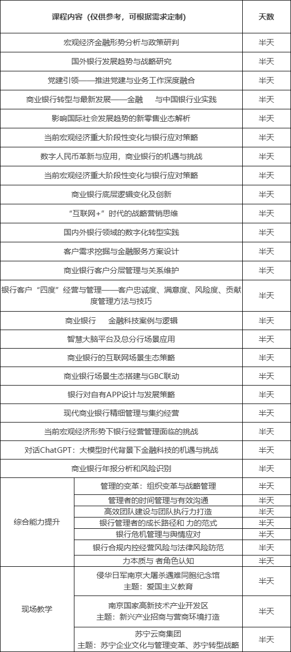商业银行高管卓越 力提升专题培训班