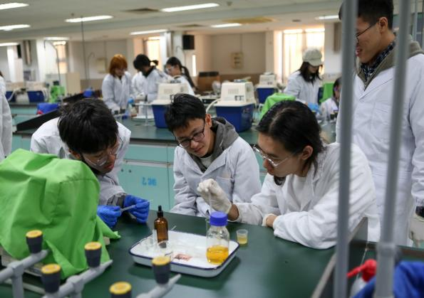 实验开始前,高卫老师以"被柠檬拯救的舰队"历史故事引入,从坏血病的防治讲到维生素C的化学结构与性质,激发了大家的探究兴趣。随后,同学们在助教老师指导下使用滴定法,认真测量了不同果汁、饮料中的维C含量,并一丝不苟地记录数据。