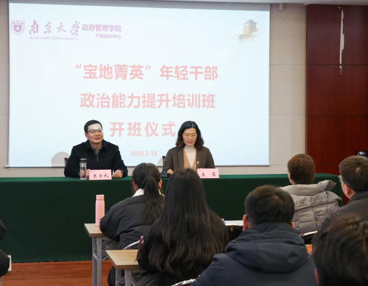 3月18日下午,“宝地菁英”年轻干部政治能力提升培训班在南京大学鼓楼校区正式开班。本次培训由中共宝应县委党校主办,南京大学干部培训中心承办,旨在进一步提宝应县年轻干部队伍的政治素养和履职能力。