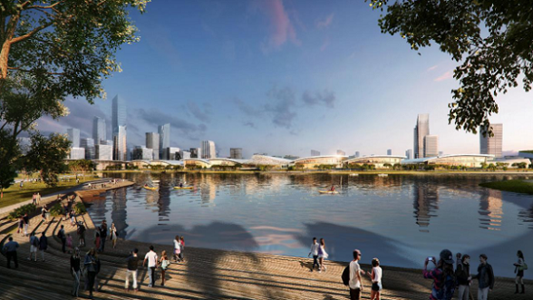 秉承生产、生态、生活“三生融合”的概念,小镇域内将规划环三山湖的8公里mini马拉松跑道,使生态底版与商业、餐饮、娱乐、休闲、运动、演艺等充分融合,服务会展宾客的同时、服务市民及城市,依托滨水生态环境,打造会展、生活、休闲一体化发展格局。
