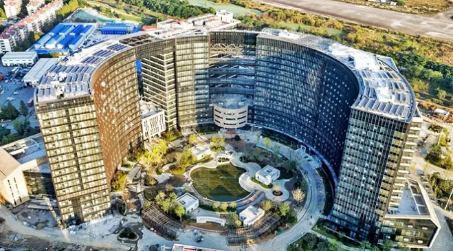 作为全国一次建成单体建筑面积 的中医院,医疗中心项目体量大、专项多、系统复杂、技术难度高、交叉作业面广,建设过程中南部新城克服了工期紧、任务重、协调方面多等多重困难,采用多种先进的设计理念和施工技术,精心设计、精细施工,确保了项目建设快速有序。